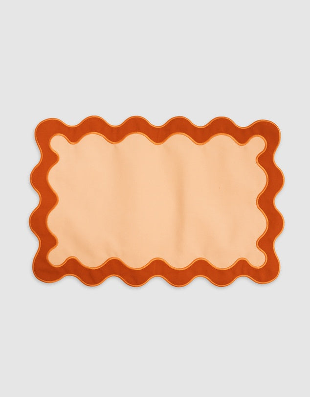Linen Table Placemet Set with Embroidered Scalloped Edges